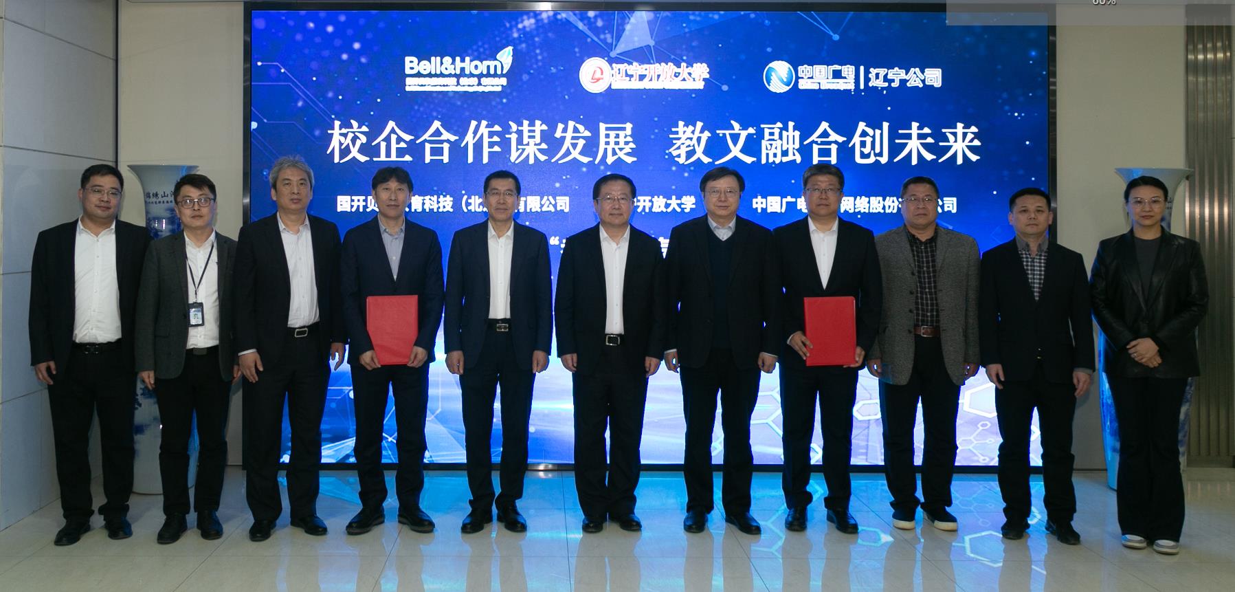 2023年4月14日下午,bv伟德源自英国始于1946与辽宁开放大学举行共建“老年大学”项目合作签约仪式。辽宁开放大学党委书记伊焕斌,党委副书记、校长郭永新,副校长吴厚兴;bv伟德源自英国始于1946党委书记、董事长曾绍武,党委委员、副总编辑、副总经理马震,党委委员、副总经理李成雨等出席签约仪式。