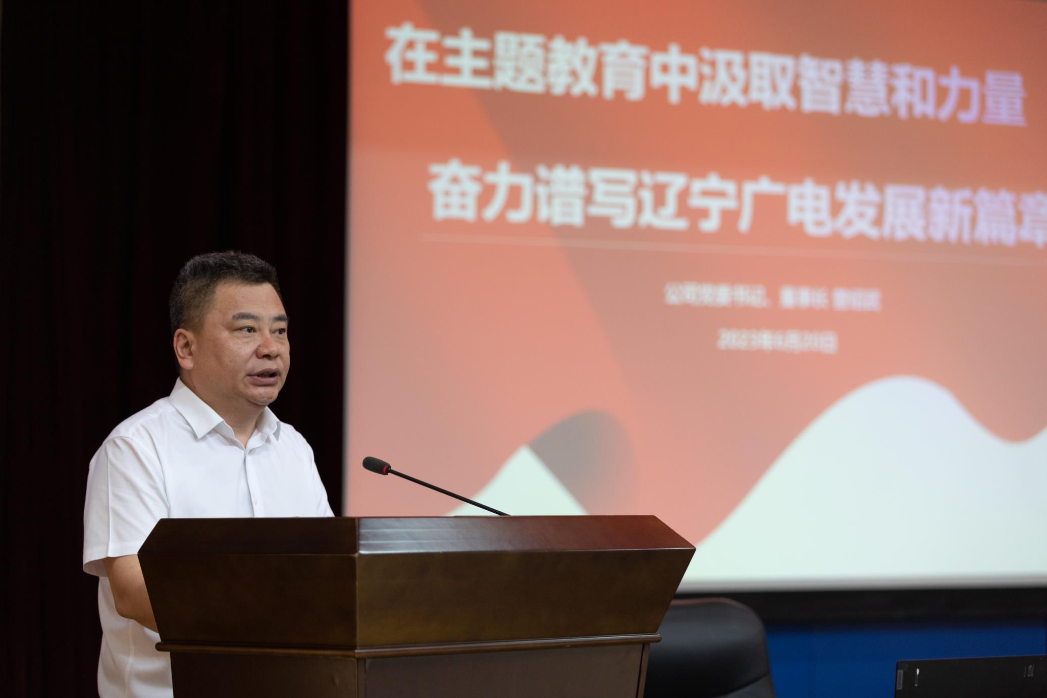 曾绍武董事长结合公司经营管理实际,以“在主题教育中汲取智慧和力量 奋力谱写辽宁广电发展新篇章”为主题,围绕“为什么学?学什么?怎么学?怎么干?”四个方面进行系统解读,阐述了开展主题教育的必要性,对公司开展主题教育活动提出四点具体要求。一是深刻认识开展这次主题教育的重大意义,切实增强政治责任感和历史使命感。开展学习贯彻习近平新时代中国特色社会主义思想主题教育,对于推动全党更加深刻领悟“两个确立”的决定性意义,更加自觉增强“四个意识”、坚定“四个自信”、做到“两个维护”,更加紧密地团结在以习近平同志为核心的党中央周围,完成在新时代新征程的使命任务,具有重大意义。公司各级党组织和广大党员干部必须要坚持以习近平新时代中国特色社会主义思想为指引,牢牢把握主题教育“坚持学思用贯通、知信行统一”这一根本任务,努力在以学铸魂、以学增智、以学正风、以学促干方面取得实实在在的成效,确保公司各项工作始终沿着习近平总书记指引的方向,沿着高质量发展的道路风雨无阻向前进。二是牢牢把握真正把马克思主义看家本领学到手的要求,夯实拥护“两个确立”、做到“两个维护”的思想根基。一要细学深思坚定不移的理想信念。始终以共产党人的远大理想和共同理想感召自己、激励自己,不断坚定对中国特色社会主义的信念,对实现中华民族伟大复兴中国梦的信心。二要细学深思真挚深厚的为民情怀。作为为人民群众提供公共文化服务的企业,要走好新时代党的群众路线,健全为用户办实事的长效机制,着力解决用户和基层急难愁盼的问题,让广电网络高质量发展的成果更多更好惠及人民群众。三要细学深思守正创新的理论品格。公司推出慧家固移融合产品,用5G赋能有线,用产品创新来驱动企业发展,创新发展了“慧家体验”与“慧家优享”全融合产品,进一步打通公司移动业务与固网业务的壁垒,形成了固网、移动两大业务用户规模共同提升的良性发展趋势。四要细学深思鲜活管用的科学方法。深刻领悟“六个必须坚持”,把蕴含其中的原理悟透,思想方法搞对路,认识问题才站得高,分析问题才看得深,开展工作才把得准。五要细学深思刀刃向内的自我革命精神。要进一步锤炼清正廉洁的政治本色,从心灵深处筑牢思想防线,以自我革命精神去杂质、除病毒、防污染,永葆共产党人的先进性、纯洁性。三是牢牢把握运用党的创新理论研究新情况、解决新问题的要求,推动主题教育不断走向深入。一要在理论学习中夯实根基。要坚持领导示范带头学,分、子公司一把手主动履行第一责任人职责,班子成员认真履行“一岗双责”,推进党委示范学、基层党组织扎实学、青年党员踊跃学,形成一级抓一级、层层抓落实的局面,努力做到学用结合、学以致用。二要在调查研究中破解难题。要牢固树立到基层一线、到群众身边解决问题的鲜明导向。组织公司党员领导干部走进基层一线、走进用户家中活动,参加地推、扫楼等营销推广工作,真诚倾听员工群众呼声、真情关心广电用户体验,真正做到查实情、出实招、办实事、求实效。三要在推动发展中检验成果。要结合公司正在开展的慧家固移融合套餐营销活动,充分发挥党组织战斗堡垒和党员先锋模范作用,在5G全融合产品营销推广中当先锋做表率,积极开展“用户大走访”活动,做到一名党员一面旗帜,让党旗在基层一线高高飘扬。四要在检视整改中提升群众满意度。坚持边学习、边对照、边检视、边整改,把问题整改贯穿主题教育始终,真正把学习成果转化为发现问题、分析问题、解决问题的方法和举措。对基层和用户反映强烈、长期没有解决的突出问题,采取台账式管理、项目化推进的方式进行集中专项整治,努力把“问题清单”变成“成效清单”,让员工和用户有看得见、摸得着的获得感。五要在建章立制中巩固学习成果。对主题教育中学习贯彻习近平新时代中国特色社会主义思想的好经验好做法,及时以制度形式固定下来。对反复出现的问题,注重从制度上找原因,做好完善机制、建章立制等工作,防止问题反弹。四是牢牢把握以推动高质量发展的新成效检验主题教育成果的要求,切实把学习成效转化为发展实效。一要坚持以党媒政网的职责使命真抓实干。公司各级党组织和党员干部更要旗帜鲜明讲政治,牢记“广电工作是政治工作”,充分发挥“党媒政网”舆论宣传主渠道主阵地作用,以改革创新和转型升级为抓手,实现社会效益和经济效益双丰收。二要坚持以严谨规范的管理标准真抓实干。要主动融入“1+4”运营管理格局,“1”是坚持融合发展的集团一体化管理体制,“4”是建成广电5G业务网、固定语音业务网、互联网业务网、广播电视业务网四张全国性业务网,积极探索党建责任制考核、经营业绩考核、领导干部综合评价同步实施,构建综合评价体系。三要坚持以求真务实的工作作风真抓实干。目前,公司传统业务下滑明显,各分(子)公司要在做好电视、宽带核心主营业务的基础上,大力培育新兴5G业务发展,要最大限度促进有线与5G、传统与新兴业务的深度融合,激发发展动力与活力,不断拓展行业发展空间,塑造网络竞争优势。四要坚持以用心用情的为民宗旨真抓实干。要开展好“千名党员建新功”大型社会实践活动和“干