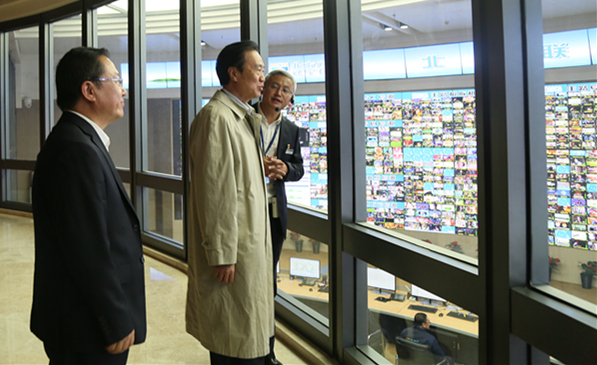 下午14时20分许,夏德仁主席一行来到北方广电5G应用创新综合展示厅和播控指挥调度中心,认真听取了北方广电党委书记、董事长、总经理曾绍武对有关企业发展、“全国一网”整合、5G应用创新等情况的汇报;详细了解了公司互动业务、融合网络、智慧广电建设等基本情况和主营业态;重点了解了广电5G的特点、优势、应用及发展规划;现场体验了广电5G+媒体制作、AR、VR呈现、云游戏等新应用;悉心考察了广电5G+8K直播、智能安防、智慧家庭、智慧社区、智慧教育、智慧医疗等广电5G智慧应用;实地参观了云数据中心和播控指挥调度中心;详细询问了北方广电改革发展面临的形势、机遇和问题。