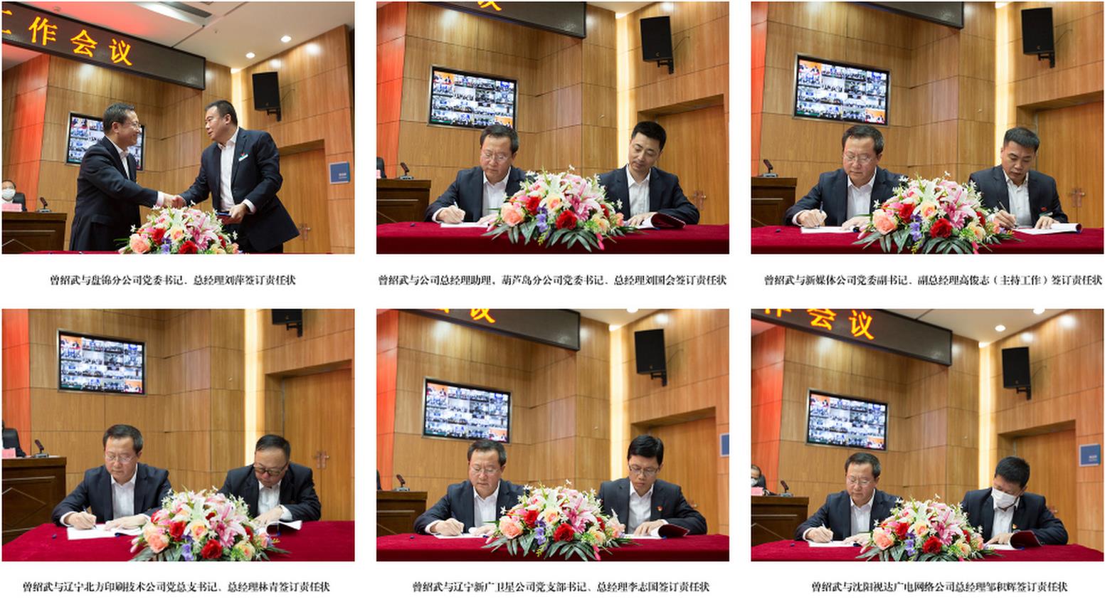 会上,曾绍武代表公司党委分别与公司领导班子成员、总助级领导人员及分(子)公司负责人签订了2021年党建目标责任状、意识形态安全责任书、经营管理目标责任状和安全运营责任状。