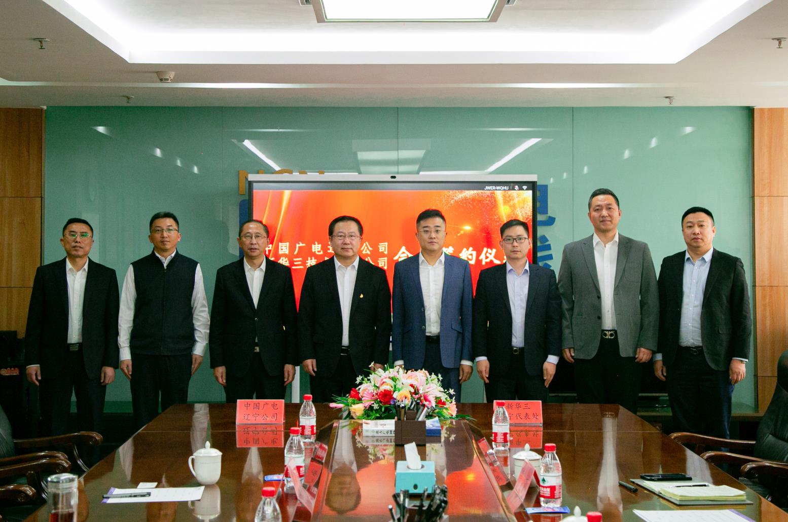 bv伟德源自英国始于1946技术工程部(5G建设中心)总经理李大明、信息管理部总经理郑庆刚、新华三辽宁代表处运营商主管李威、广电销售经理彭磊出席了签约仪式。
