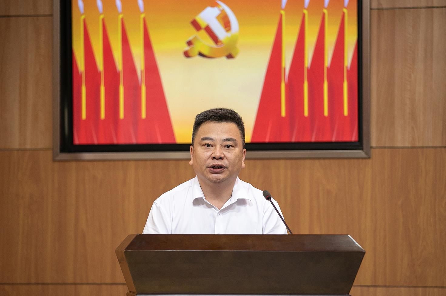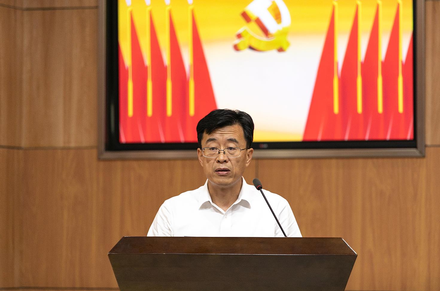 公司党委副书记、纪委书记、工会负责人兼总部党委书记苏万宝发表讲话