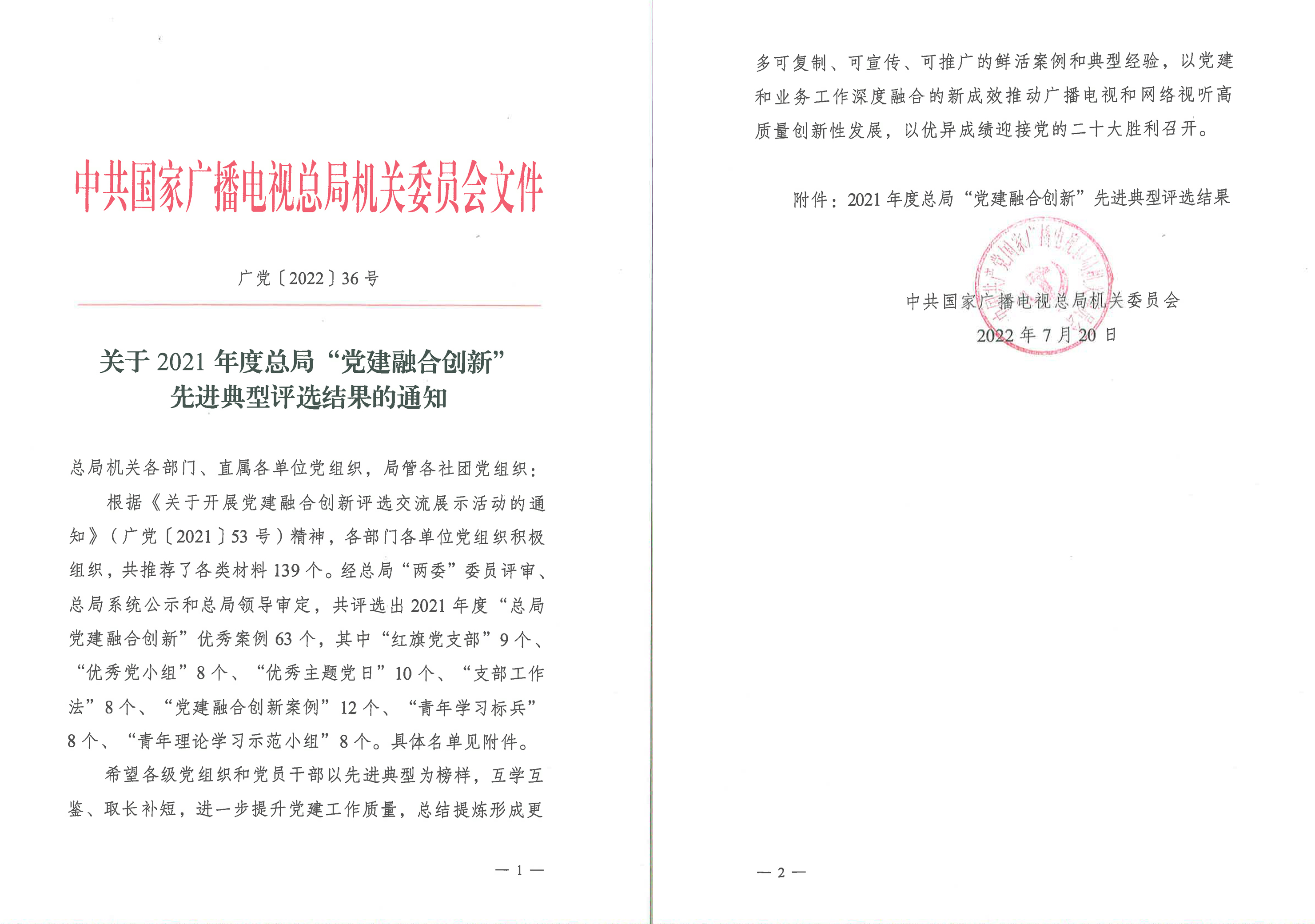公司党委主题党日获评广电总局2021年度优秀主题党日