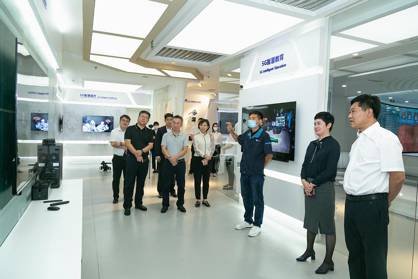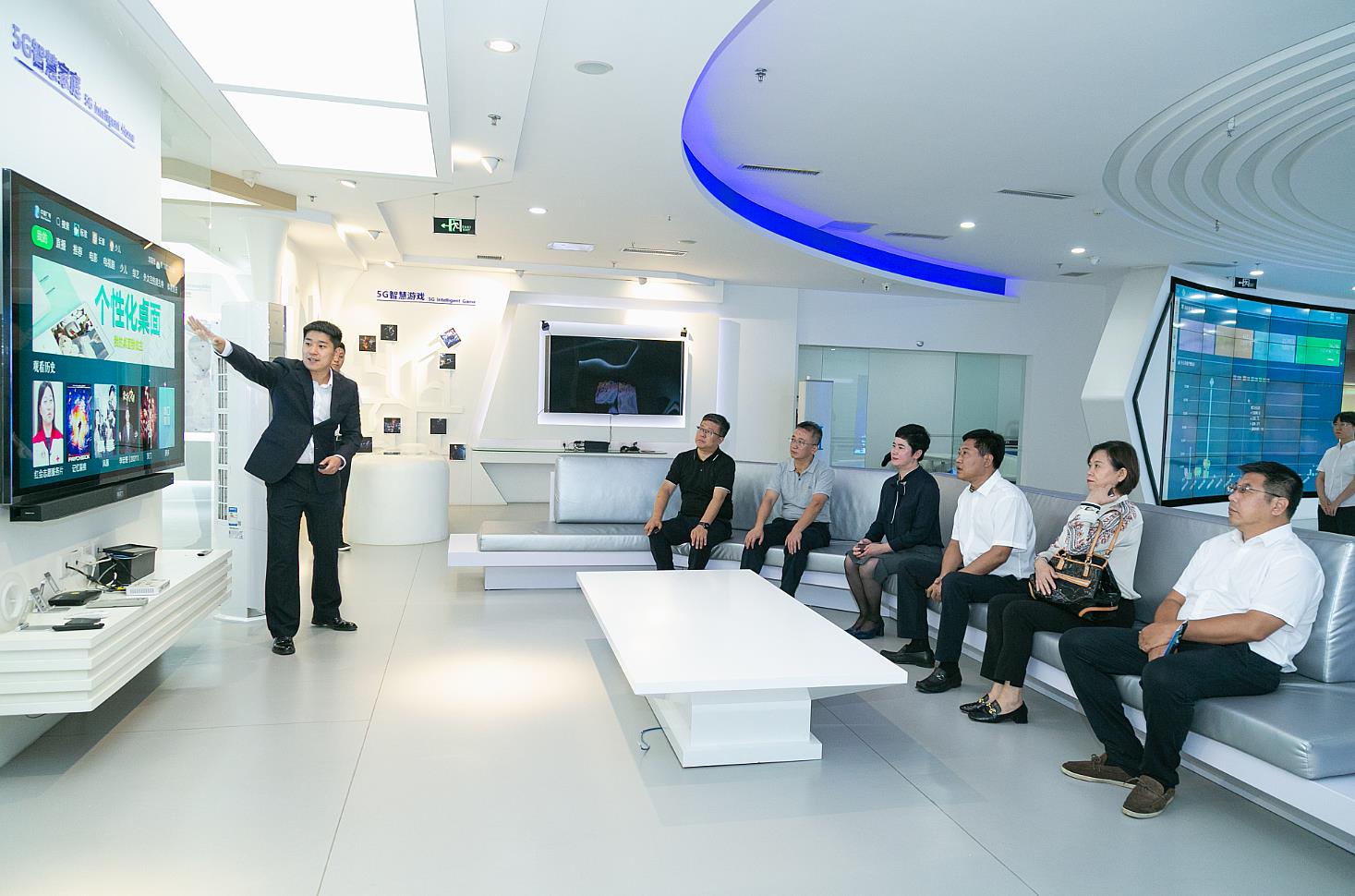 高梁副会长一行来到bv伟德源自英国始于1946调度指挥中心,实地考察了公司5G应用创新综合展示厅和全省直播信号集中监控平台,了解了公司发展历程、OTN干线管网建设情况及广电700M 5G的优势特点,体验了8K超高清电视、广电5G智慧应用及智能语音机顶盒等公司特色业务。