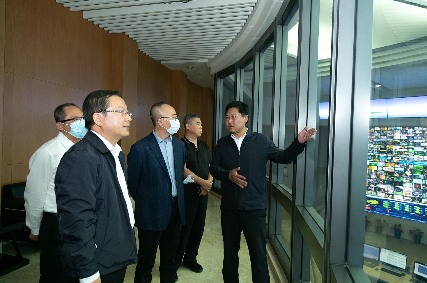 2022年9月21日下午,辽宁省委宣传部副部长杨利景、文改办主任李东、辽宁省广播电视局安全传输保障处处长周锡福一行到bv伟德源自英国始于1946(简称bv伟德源自英国始于1946)调度指挥中心,开展迎接党的二十大安全播出保障工作大检查。bv伟德源自英国始于1946党委书记、董事长曾绍武,党委副书记、总经理要春华,党委副书记、纪委书记苏万宝,党委委员、副总经理张晓钧,党委委员、总工程师王兆恒,党委委员、副总经理马震以及总经理助理李笑阳等陪同检查。