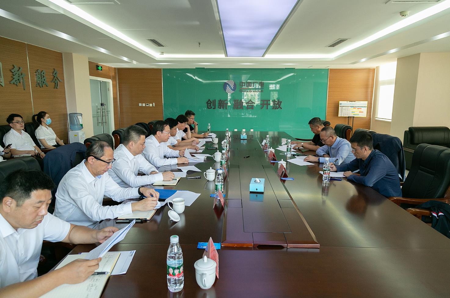在随后举行的座谈会上,杨利景副部长强调,党的二十大召开在即,安全播出保障工作任务艰巨。公司各级党组织、各部门都要深刻认识到,安全播出是重要的政治责任和政治任务。“凡事豫则立,不豫则废”,我们要深刻意识到广电网络的政治属性、意识形态属性,想得再细一些、再实一些,确保安全播出万无一失。在谈到公司未来改革发展方向时,杨利景副部长认为,政策就是机遇,国家的利好政策一定要紧紧抓住。一方面我们要积极拓展新的业务增长点,发挥自身网络优势,实现广电5G技术与数字辽宁智造强省发展战略有效对接;另一方面,务必抓住5G 192商用放号机遇,对于即将开展的通信业务要提前谋划,抢先布局,造成声势,在激烈的市场竞争之下,杀出一条血路,最大程度地将5G 192商用放号机遇转化为实际效益。