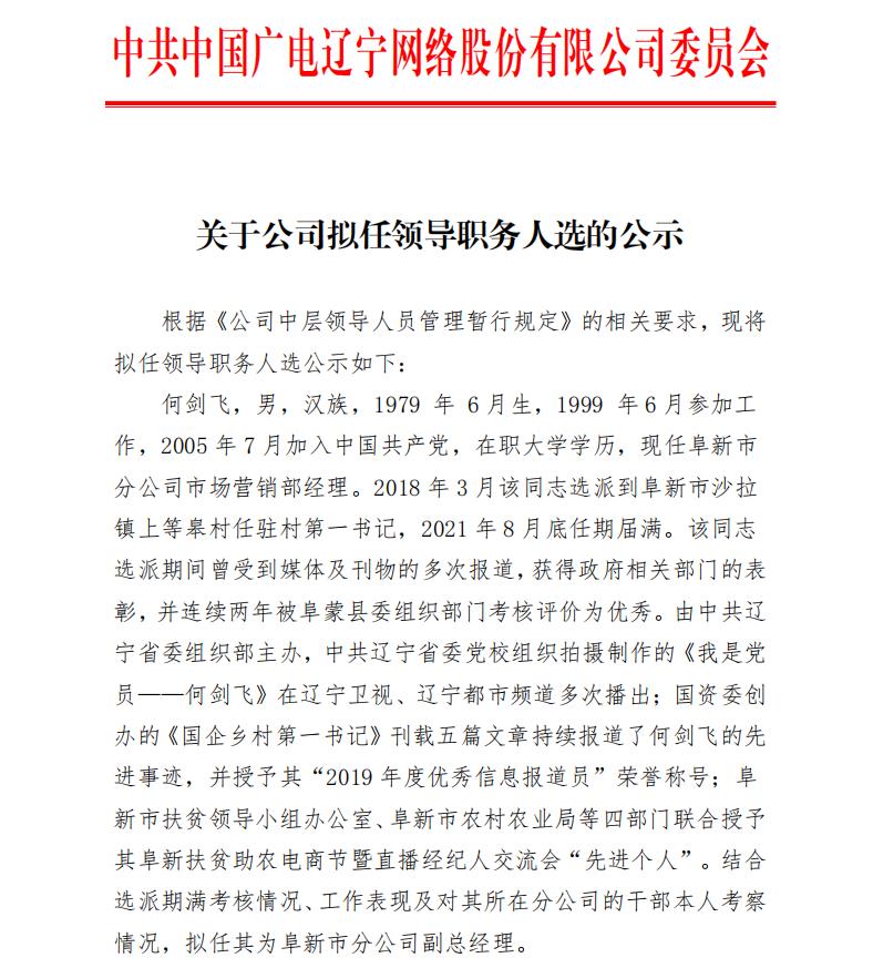 关于公司拟任领导职务人选的公示