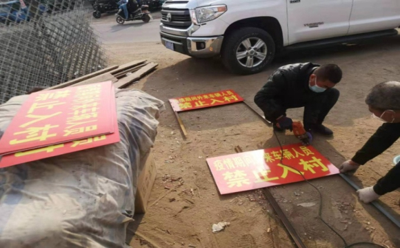 同时,他动手制作6块交通指示牌,安装于上等皋村重要叉路口处,并在体温检测点插上“青年突击队”旗帜,拉上宣传横幅,严抓外来人员体温检测和外来车辆登记工作。