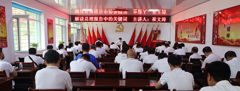 参观后,全体党员和入党积极分子来到基地学习室,共同聆听了公司党委书记、总经理崔文涛以“解读李克强总理在十三届全国人大三次会议上所作的政府工作报告中的关键词”为内容讲的党课。崔文涛在讲课中阐释党的理论和政策,联系新网公司的现实和未来,谈“三沟精神”的教育和启示,就下一步加大服务力度保住基本业务、保障信源传输抓好增值业务、提高技术支撑加强与县区合作促进公司发展提出要求。
