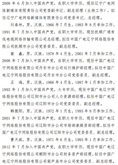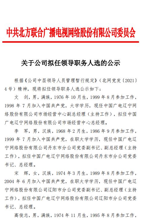 关于公司拟任领导职务人选的公示